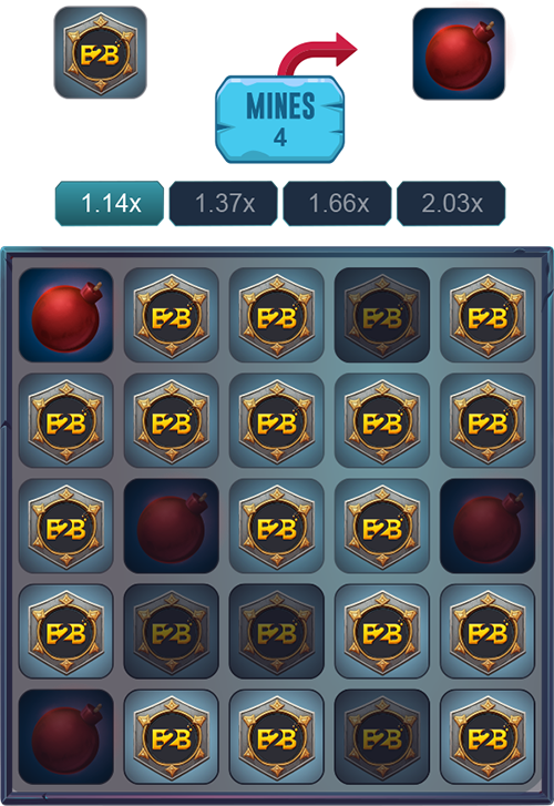 Game ranjau berisi 25 bidang tertutup, di bawah setiap bidang mungkin berisi atau tidak berisi bom. Pemain akan mengungkap bidang tersebut. Dimungkinkan untuk memiliki sedikitnya 1 bom, sebanyak 24 bom di panel permainan.